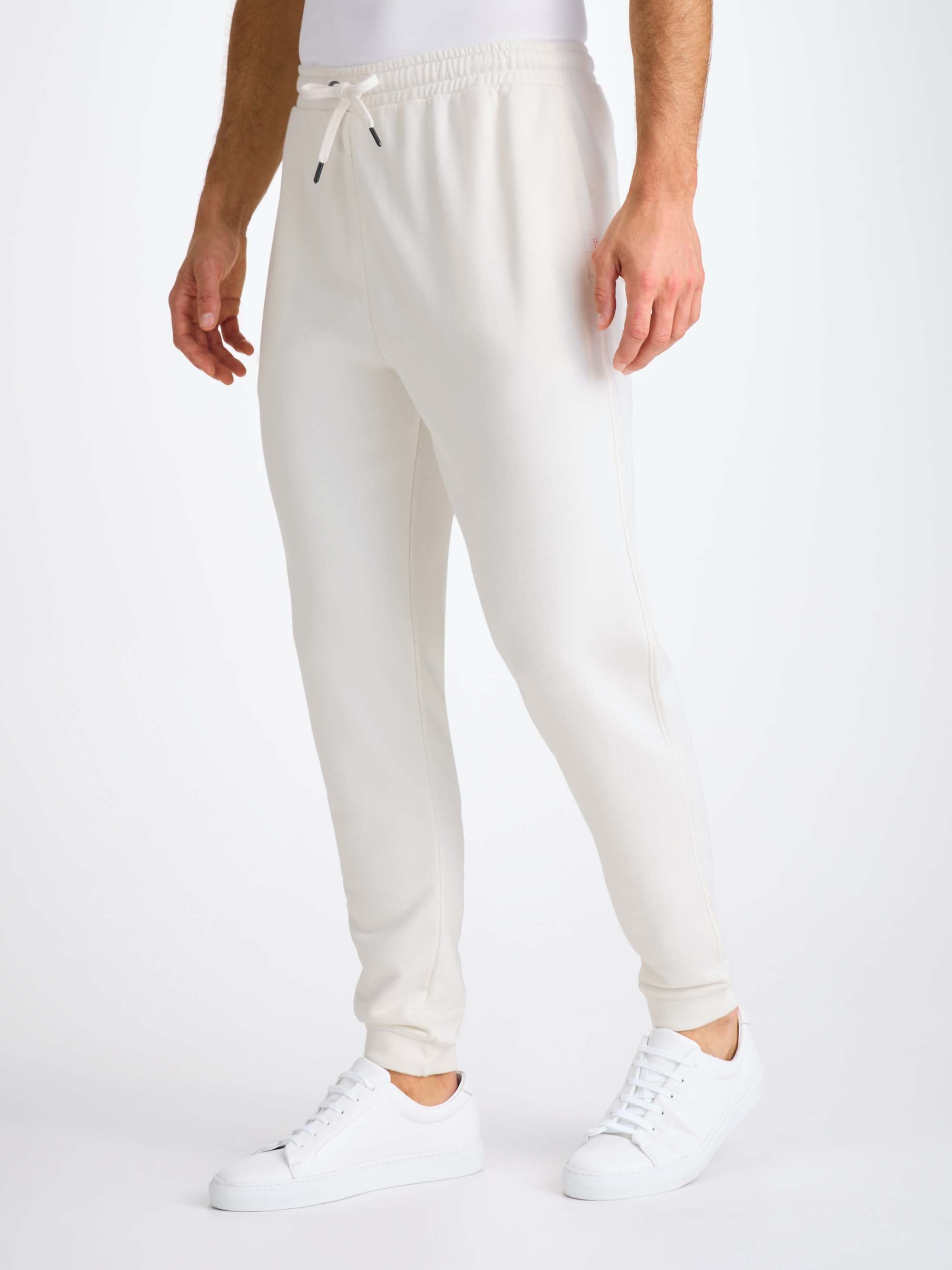 Seen here in our seasonal white tone, our Quinn sweatpants ensure all-day-long comfort whether you're sweating it out in the gym or chilling on the sofa. Featuring a combined elastic and tie waistband, our sweats also feature two front side pockets and a zipped back pocket to keep your phone and essentials close whilst you're out and about. Stylish, yet practical. The Quinn fabric combines all the key qualities of our cotton and micro modal; it's durable and has great colour retention, meaning it can withstand long-lasting wear and won't fade in colour. It's thermoregulating, making it perfect for warm days or cosy evenings in and it's breathable, so it's excellent for exercise. But perhaps most importantly, it's forever soft, seriously - you won't believe the quality. The model is 6’2’’ / 188.5cm tall. He wears a size Medium. PRODUCT DETAILS Material: Cotton/Micro Modal Fabric Weight: Medium Fabric Type: Jersey Gender: Men's Colour: White Pattern: Plain Season: 25-W Country of Origin: Portugal Composition: 68% Cotton 32% Modal Fit: Regular Fit Item Number: 3173-QUIN001WHI