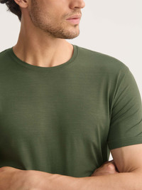 Effortless softness, timeless style. Our signature Basel men’s t-shirt in evergreen is the perfect blend of style and ease—lightweight, breathable and exceptionally soft. Made from stretch micro modal, it moves with you and adapts to your body’s temperature, keeping you cool or warm as needed. Ideal for lounging, sleeping or travelling in comfort, it’s a wardrobe essential you’ll reach for again and again. Cut with a streamlined fit and finished with a soft crew neckline, this versatile t-shirt looks as good on its own as it does layered under loungewear. A long-standing customer favourite, the Basel fabric not only feels incredible but is also sustainably made from European beech trees in a carbon-neutral process. Durable and colourfast, it will retain its softness and evergreen tone wash after wash. Add a personal touch with monogramming or a motif—learn more about our personalisation services. Model is 6’3” / 190cm, wearing a size Medium. PRODUCT DETAILS Composition: 95% Modal 5% Elastane Fabric Weight: Medium Pattern: Plain Sleeve Length: Short Sleeve Neck Shape: Crew Neck Country of Origin: Czech Republic Item Number: 3048-BASE022GRE