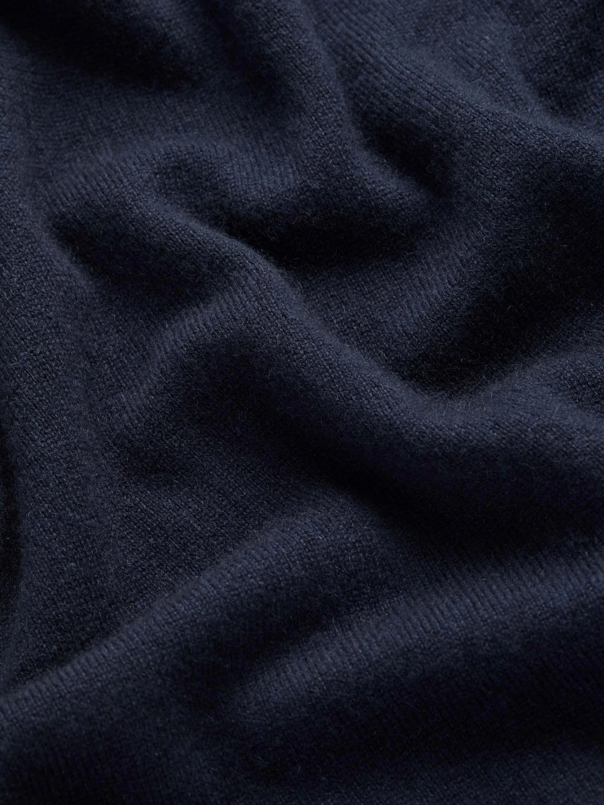 The Finley track pant is perfect in and out of the house, whether you're hitting the slopes, on a country walk or chilling on the sofa. With its elasticated waist, drawstring tie and slip-in side pockets, the aim was to create a garment that looks effortlessly chic but is still as comfortable to slip into as a favourite tracksuit. Our Finley navy men's cashmere track pants have a gradual taper to the leg and a ribbed waistband and ankle cuffs, for a relaxed yet stylish fit. Our philosophy is to use the finest materials and components, paying attention to every detail of construction so that the resulting garment is both comfortable and stylish. The starting point for the Finley was the cashmere - we selected a luxuriantly soft 12 gauge pure Italian cashmere from Cariaggi which we consider to be best in class. Certified by the Health and Textile Association, we use 100% Cariaggi cashmere. Prioritising sustainable practices and producing natural fibres that are environmentally responsible, Cariaggi cashmere is hypoallergenic and gentle on the skin. Touch this fabric and you'll be reminded what cashmere should feel like. The material hangs wonderfully, for a look that's as luxurious as the feel. Keep your cashmere looking its best with our Beechwood Cashmere Comb. The model is 6'1" / 186cm tall. He wears a size Medium. PRODUCT DETAILS Material: Pure Cashmere Fabric Weight: Medium Fabric Type: Jersey Gender: Men's Colour: Navy Pattern: Plain Season: 25-W Country of Origin: Mauritius Composition: 100% Cashmere Fit: Regular Fit Item Number: 3615-FINL010NAV