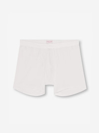 Our Jack trunks in white are cut for a streamlined, classic look with a fitted shape, classic open front and a longer leg. A fabric-covered waistband provides gentle skin contact. Crafted from an ultra-soft blend of 92% Pima cotton and 8% elastane for added stretch, they're the ideal choice for sleeping, lounging and all-day wear. The model is 6’1” / 188cm tall with waist size 31” / 80cm, chest size 39” / 101cm. He wears a size Medium. PRODUCT DETAILS Material: Cotton/Elastane Fabric Weight: Light Fabric Type: Jersey Gender: Men's Colour: White Pattern: Plain Season: CLA Country of Origin: Albania Composition: 92% Cotton 8% Elastane Fit: Regular Fit Item Number: 8545-JACK001WHI