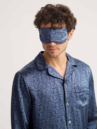 A timeless rose motif for restful luxury. Inspired by the rose—an enduring symbol of Derek Rose—this silk eye mask features a digitally printed motif that preserves the hand-drawn texture in two-tone shades, playing beautifully with light and negative space. The reversible design ensures comfort against the skin, while the matching silk-covered elastic strap provides a secure yet gentle fit—no more slipping off during the night. For the ultimate finishing touch, the mask comes with a fully lined silk drawstring pouch in the same shade, making it a thoughtful gift or a little luxury for yourself. Say hello to uninterrupted, restorative sleep with the Derek Rose silk eye mask. PRODUCT DETAILS Composition: 100% Silk Fabric Weight: Light Pattern: Print Country of Origin: United Kingdom Item Number: 0200-BRIN124NAV