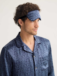 A timeless rose motif for restful luxury. Inspired by the rose—an enduring symbol of Derek Rose—this silk eye mask features a digitally printed motif that preserves the hand-drawn texture in two-tone shades, playing beautifully with light and negative space. The reversible design ensures comfort against the skin, while the matching silk-covered elastic strap provides a secure yet gentle fit—no more slipping off during the night. For the ultimate finishing touch, the mask comes with a fully lined silk drawstring pouch in the same shade, making it a thoughtful gift or a little luxury for yourself. Say hello to uninterrupted, restorative sleep with the Derek Rose silk eye mask. PRODUCT DETAILS Composition: 100% Silk Fabric Weight: Light Pattern: Print Country of Origin: United Kingdom Item Number: 0200-BRIN124NAV