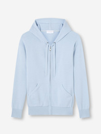 Effortless luxury in a relaxed silhouette Wrap yourself in pure comfort with the Daphne Hoodie in glacier blue—a relaxed-fit zip-through style crafted from 100% Italian Cariaggi cashmere. Supremely soft and lightweight, this hoodie offers the perfect balance of laid-back luxury and everyday versatility. Designed with a relaxed yet flattering fit, the Daphne features dropped shoulders, angled front pockets, a drawstring hood and ribbed cuffs and hem for ease of movement and subtle structure. The glacier blue hue adds a serene touch, ideal for layering through the seasons. Spun from sustainably sourced Cariaggi cashmere—renowned for its exceptional softness, warmth and durability—this hoodie is hypoallergenic, breathable and gentle on the skin. Perfect for travel, lounging or layering apres-ski, it redefines comfort with a sophisticated edge. We recommend sizing down if you prefer a more regular fit. Keep your cashmere looking its best with our Beechwood Cashmere Comb . Model is 5’9.5” / 176cm tall, wearing a size Small. PRODUCT DETAILS Composition: 100% Cashmere Fabric Weight: Medium Pattern: Plain Sleeve Length: Long Sleeve Country of Origin: Mauritius Item Number: 1519-DAPH016BLU