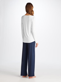 Our crisp white Lara long sleeve top has a relaxed but flattering shape with a curved, loose hem and offers a comfortable and natural fit allowing free movement. Fashioned from our signature soft micro modal which will retain its white colour wash after wash. Based on our best-selling men's Basel stretch micro modal fabric, the Lara is slightly lighter weight whilst being ultra-soft and versatile. Not only is the fabric soft, but thermostatic properties in the micro modal fibres allow them to react to changes in temperature and regulate your body heat. What's more, the Lara fabric retains its initial softness and is also environmentally friendly; made from sustainably forested European beech trees using a process that is carbon neutral. To make it truly special, we can personalise your garment with initials or a motif. Read more about our personalised services here . The model is 5’10” / 178cm tall. She wears a size Small. PRODUCT DETAILS Composition: 95% Modal 5% Elastane Fabric Weight: Medium Pattern: Plain Sleeve Length: Long Sleeve Neck Shape: Crew Neck Country of Origin: Czech Republic Item Number: 1520-LARA001WHI
