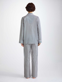 Our light, pure cotton pyjamas are perfect when the temperature rises. Made from ultra-fine batiste cotton, this is a soft, lightweight and cool PJ that's perfect for midsummer wear. It's long been a favourite fabric weight to take on holiday, as it's not only comfortable in warm climates, but also light to pack and easy to carry. Hand drawn in a geometric print, the scalloped leaf design features a dark green and pink tone. Our scalloped leaf print pyjama jacket features a sartorially inspired curved collar, button through jacket and a piped breast pocket. Furthermore, the rest of the jacket is piped throughout with complementary white. Matching the top in the detail stakes, the trousers feature side pockets, an elasticated waist for comfort. To make it truly special, we can personalise your garment. We offer a range of options including monogramming, motifs, and secret messages. Read more about our personalised services here . The model is 5’9.5” / 177cm tall . She wears a size Small. PRODUCT DETAILS Material: Pure Cotton Fabric Weight: Light Fabric Type: Regular Gender: Women's Colour: Jungle Green Pattern: Print Sleeve Length: Long Sleeve Season: 25-W Country of Origin: Czech Republic Composition: 100% Cotton Fit: Regular Fit Item Number: 2012-LEDB088GRE