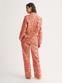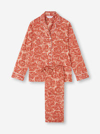 Lightweight luxury in an iconic rose design. Inspired by the rose—an enduring symbol of Derek Rose—this women's rustic red pajama set features a hand-drawn floral print, digitally rendered to preserve its original texture and detail. The two-tone colorway creates a refined play of pattern and negative space. Crafted from our signature cotton batiste, these pajamas are exceptionally soft, breathable and lightweight—perfect for thermo-regulation all year round. The button-through pajama top is finished with a revere collar, piped trim and a chest pocket, while the pants feature an elasticated waist with a self-fabric drawstring and side pockets for comfort and ease. Perfect for lounging or sleeping in style, this set is a timeless addition to your nightwear wardrobe. Add a personal touch with monogramming, a motif or a secret message. Model is 5’9.5” / 176cm, wearing a size Small. PRODUCT DETAILS Composition: 100% Cotton Fabric Weight: Light Pattern: Print Sleeve Length: Long Sleeve Country of Origin: Czech Republic Item Number: 2012-LEDB092RED