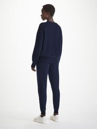 Our new Daphne women's cashmere sweater in classic navy has a flattering but relaxed fit, with the addition of dropped shoulders it's perfect for both lounging at home and off-duty weekend attire. The starting point for Daphne was the grade of pure cashmere we chose — a luxuriously soft pure Italian cashmere made by Carriagi, which we consider to be best in class. Touch this fabric and you'll be reminded what cashmere should feel like. The material hangs wonderfully, for a look that's as luxurious as the feel. The Daphne is part of our premium line of luxury leisurewear, born out of the desire to create a garment that looks effortlessly chic but is still as comfortable to slip into. Lightweight and easy to fold and pack into your luggage, this sweater also makes for the perfect off-piste ski attire. The model is 5' 9" / 176cm tall with waist size 24” / 60cm, bust size 34” / 87cm. She wears a size Small. PRODUCT DETAILS Material: Pure Cashmere Fabric Weight: Medium Fabric Type: Jersey Gender: Women's Colour: Navy Pattern: Plain Sleeve Length: Long Sleeve Season: 24-W Country of Origin: Mauritius Composition: 100% Cashmere Fit: Relaxed Fit Item Number: 1522-DAPH010NAV