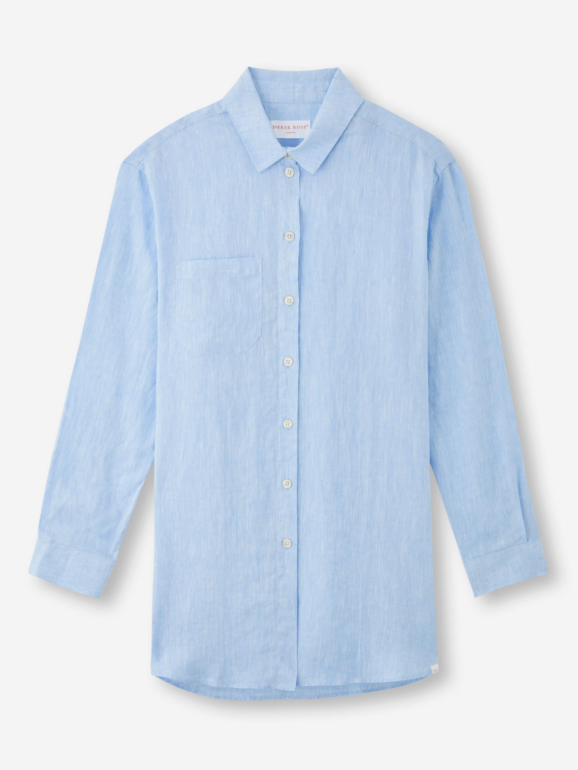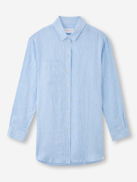 We have developed a beautiful, lighter weight washed linen in a sky blue tone that becomes increasingly soft with wear. The breathable pure linen will keep you cool and comfortable in even the hottest of conditions. The Sicily shirt features a curved back yoke with a box-pleat for comfort and a curved hem with side vents for ease of movement. We've used the classic styling of a button-through front and cuffs, a 2-piece collar and for a modern look, the shirt is designed for an oversized fit for effortless summer chic. For a final touch of luxe, the shirt is finished with imitation pearl buttons throughout and our minimalist rose logo label at the hem. There's also a handy 'locker' loop on the back for you to hang your shirt up when changing. The model is 5’9.5” / 177cm tall . She wears a size Small. PRODUCT DETAILS Material: Pure Linen Fabric Weight: Light Fabric Type: Regular Gender: Women's Colour: Sky Blue Pattern: Plain Sleeve Length: Long Sleeve Season: 25-W Country of Origin: Lithuania Composition: 100% Linen Fit: Regular Fit Item Number: 1516-SICI001BLU