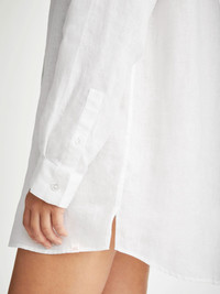 We have developed a beautiful, lighter weight washed linen that becomes increasingly soft with wear. The breathable pure linen will keep you cool and comfortable in even the hottest of conditions. The Sicily shirt features a curved back yoke with a box-pleat for comfort and a curved hem with side vents for ease of movement. We've used the classic styling of a button-through front and cuffs, a 2-piece collar and for a modern look, the shirt is designed for an oversized fit for effortless summer chic. For a final touch of luxe, the shirt is finished with imitation pearl buttons throughout and our minimalist rose logo label at the hem. There's also a handy 'locker' loop on the back for you to hang your shirt up when changing. The model is 5’9.5” / 177cm tall with waist size 24” / 61cm, bust size 31” / 79 cm. She wears a size Small. PRODUCT DETAILS Material: Pure Linen Fabric Weight: Light Fabric Type: Regular Gender: Women's Colour: White Pattern: Plain Sleeve Length: Long Sleeve Season: 24-W Country of Origin: Portugal Composition: 100% Linen Fit: Regular Fit Item Number: 1516-SICI001WHI