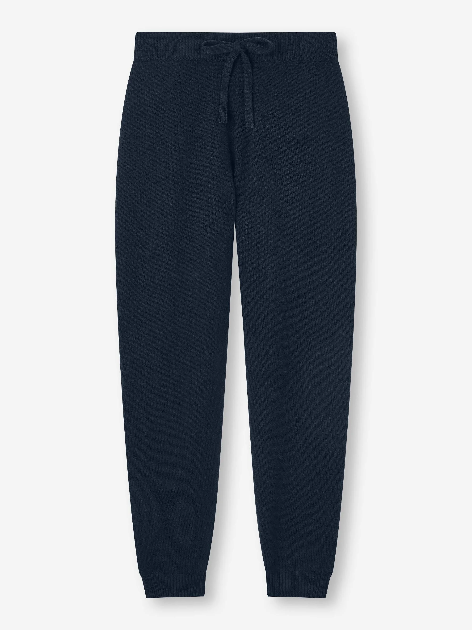 With their elasticated waist, self-fabric drawstring ties and ribbed ankle cuffs, the aim was to create a garment that looks effortlessly chic but is still as comfortable to slip into as a favourite tracksuit. Lightweight and easy to fold and pack into your luggage, these track pants also make for the perfect off-piste ski attire. The Daphne track pant is part of our premium line of luxury leisurewear, born out of the desire to craft an off-duty wardrobe that matches up to the highest sartorial and quality standards. Our philosophy is to use the finest materials and components, paying attention to every detail of construction, so that the resulting garment is both comfortable and stylish. The starting point for the Daphne was the cashmere - we selected a luxuriantly soft 10 gauge pure Italian cashmere from Cariaggi which we consider to be the best in class. Touch this fabric and you'll be reminded what cashmere should feel like. The material hangs wonderfully, for a look that's as luxurious as the feel. The 10 gauge yarn is incredibly light yet extra warm. Seen here in navy, this has to be the finest way to stay warm during the colder months. The model is 5' 10" / 178cm tall with waist size 25.5” / 64.8cm, bust size 32” / 81.3cm. She wears a size Small. PRODUCT DETAILS MATERIAL: Pure Cashmere FABRIC WEIGHT: Medium FABRIC TYPE: Jersey GENDER: Women's COLOUR: Navy PATTERN: Plain SEASON: CON COUNTRY OF ORIGIN: Mauritius COMPOSITION: 100% Cashmere FIT: Regular Fit ITEM NUMBER: 1701-DAPH010NAV