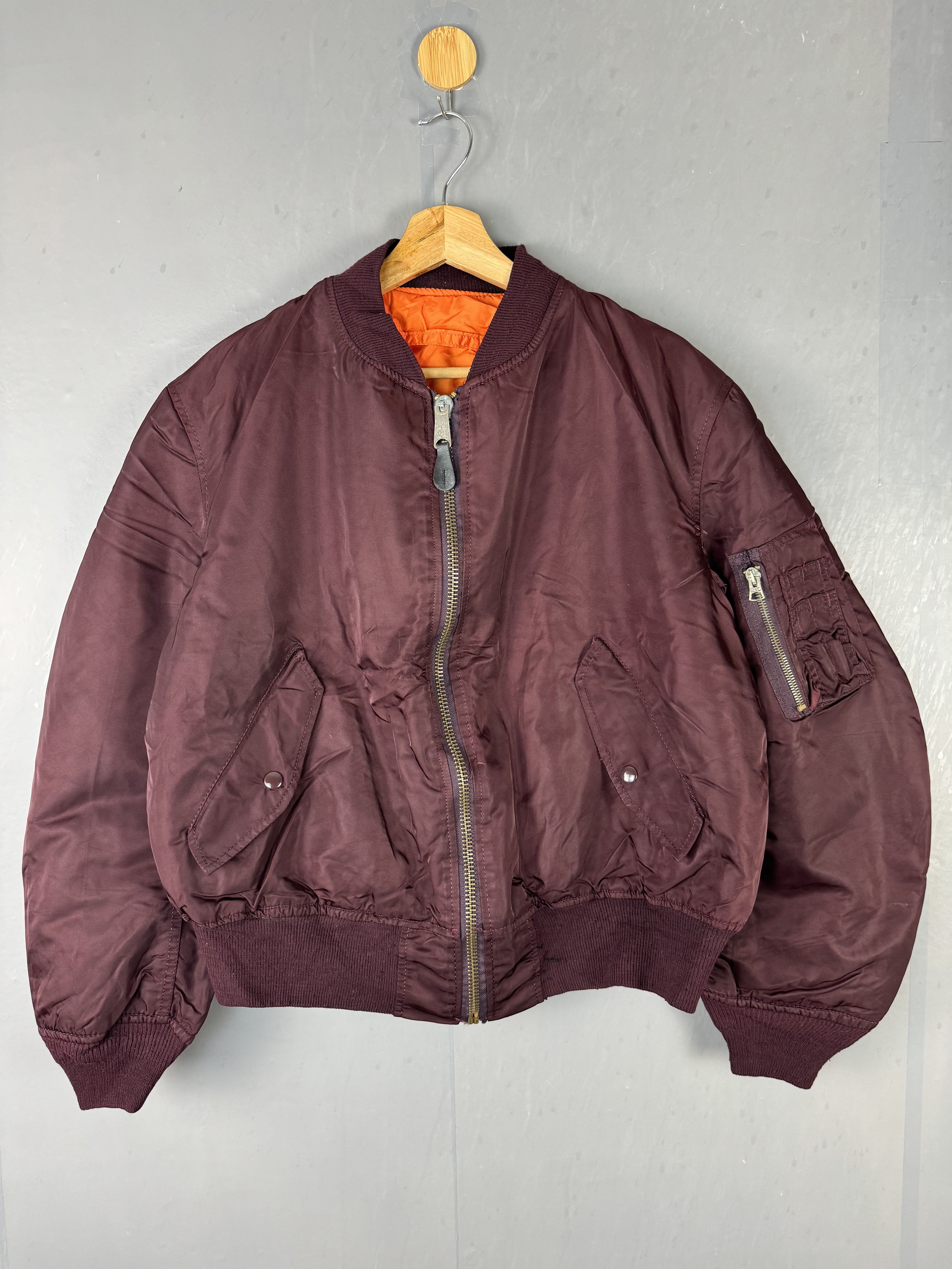 VINTAGE ALPHA INDUSTRIES USAF MILITARY STYLE BOMBER JACKET PLEASE READ THE DESCRIPTION!!! DON'T BE SHY TO ASK ANY QUESTION :- WE DO COMBINE SHIPPING. HAPPY SHOPPING WITH US. • Size on tag : L • Made In : Usa • Materials : Refer Photo • Measurement : Chest : 25 inches Length : 24 inches Shoulder : 20 inches Sleeve Length : 25 inches Length From To Neck : 30 inches Hem : 18 inches • Condition : Good used condition Refer photo WORLDWIDE SHIPPING 3-5 days arrive with tracking number • NO REFUND / NO RETRUN Please carefully check the description and the measurements posted for the item you're interested in Take a look at all the photos {defects, tags, etc}. if you have doubts please don't buy. Don't worry about customs tax or fees. I always declare as "GIFT" and put the value item $10 - 40 Please leave your PHONE NUMBER on the note while make a purchase, as the shipping company always need the phone number to help delivering. THANK YOU. Pian