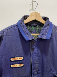 VINTAGE UNION BAY PATCHED BOMBER STYLE JACKET DISTRESSED PLEASE READ THE DESCRIPTION!!! DON'T BE SHY TO ASK ANY QUESTION :- WE DO COMBINE SHIPPING. HAPPY SHOPPING WITH US. • Size on tag : M • Made In : korea • Materials : refer photo • Measurement : Chest : 24.5 inches Length : 24 inches Shoulder : 20 inches Sleeve Length : 21.5 inches Length From To Neck : 28 inches Hem : 19.5 inches • Condition : Good used condition slight stained WORLDWIDE SHIPPING 3-5 days arrive with tracking number • NO REFUND / NO RETRUN Please carefully check the description and the measurements posted for the item you're interested in Take a look at all the photos {defects, tags, etc}. if you have doubts please don't buy. Don't worry about customs tax or fees. I always declare as "GIFT" and put the value item $10 - 40 Please leave your PHONE NUMBER on the note while make a purchase, as the shipping company always need the phone number to help delivering. THANK YOU. Dumoh8