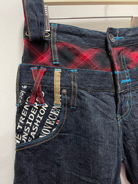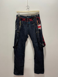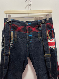 BARCEDOS JAPAN SEDITIONARIES PUNK STYLE WITH SUSPENDER JEANS PLEASE READ THE DESCRIPTION!!! DON'T BE SHY TO ASK ANY QUESTION :- WE DO COMBINE SHIPPING. HAPPY SHOPPING WITH US. • Size on tag : 73 like 29 • Made In : China • Materials : Cotton • Measurement : Waist : 14.5 (29) inches (manual) Outseam : 40.5 inches Inseam : 30 inches Front Rise : 11 inches Back Rise : 13.5 inches Thigh : 10.5 inches Knee : 8 inches Leg Oppening : 7.5 (15) inches • Condition : Good used condition WORLDWIDE SHIPPING 3-5 days arrive with tracking number • NO REFUND / NO RETRUN Please carefully check the description and the measurements posted for the item you're interested in Take a look at all the photos {defects, tags, etc}. if you have doubts please don't buy. Don't worry about customs tax or fees. I always declare as "GIFT" and put the value item $10 - 40 Please leave your PHONE NUMBER on the note while make a purchase, as the shipping company always need the phone number to help delivering. THANK YOU. dumoh38