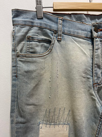CHEAP MONDAY PATCHWORK RIPPED SLIM FITS TROUSERS DISTRESSED DENIM JEANS PLEASE READ THE DESCRIPTION!!! DON'T BE SHY TO ASK ANY QUESTION :- WE DO COMBINE SHIPPING. HAPPY SHOPPING WITH US. • Size on tag : 31/32 • Made In : refer photo • Measurement : Waist : 16 (32) inches Outseam : 42 inches Inseam : 32 inches Front Rise : 9.5 inches Back Rise : 14 inches Thigh : 12 inches Knee : 8 inches Leg Oppening : 7 (14) inches • Condition : Good used condition WORLDWIDE SHIPPING 3-5 days arrive with tracking number • NO REFUND / NO RETRUN Please carefully check the description and the measurements posted for the item you're interested in Take a look at all the photos {defects, tags, etc}. if you have doubts please don't buy. Don't worry about customs tax or fees. I always declare as "GIFT" and put the value item $10 - 40 Please leave your PHONE NUMBER on the note while make a purchase, as the shipping company always need the phone number to help delivering. THANK YOU dumoh11