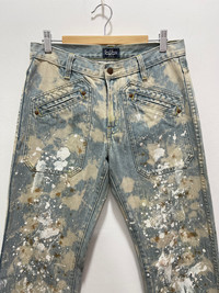 JAPANESE BRAND EARL JEAN ACID WASH DESIGN PAINT PLATTER FLARE LEG DISTRESSED DENIM JEANS PLEASE READ THE DESCRIPTION!!! DON'T BE SHY TO ASK ANY QUESTION :- WE DO COMBINE SHIPPING. HAPPY SHOPPING WITH US. • Size on tag : 29x34 like 29 • Made In : refer photo • Materials : refer photo • Measurement : Waist : 15 (30) inches (manual) Outseam : 43 inches Inseam : 34 inches Front Rise : 9.5 inches Back Rise : 14 inches Thigh : 11.5 inches Knee : 8.5 inches Leg Oppening : 9 (18) inches • Condition : Good used condition WORLDWIDE SHIPPING 3-5 days arrive with tracking number • NO REFUND / NO RETRUN Please carefully check the description and the measurements posted for the item you're interested in Take a look at all the photos {defects, tags, etc}. if you have doubts please don't buy. Don't worry about customs tax or fees. I always declare as "GIFT" and put the value item $10 - 40 Please leave your PHONE NUMBER on the note while make a purchase, as the shipping company always need the phone number to help delivering. THANK YOU. dumoh9