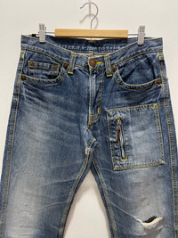 JAPANESE BLUE WAY MODERN VINTAGE DISTRESSED DENIM JEANS MADE IN JAPAN PLEASE READ THE DESCRIPTION!!! DON'T BE SHY TO ASK ANY QUESTION :- WE DO COMBINE SHIPPING. HAPPY SHOPPING WITH US. • Size on tag : 32 like 31 • Made In : japan • Materials : refer photo • Measurement : Waist : 15.5 (31) inches Outseam : 40 inches Inseam : 31 inches Front Rise : 10 inches Back Rise : 14.5 inches Thigh : 12.5 inches Knee : 9 inches Leg Oppening : 8.5 (17) inches • Condition : Good used condition holes WORLDWIDE SHIPPING 3-5 days arrive with tracking number • NO REFUND / NO RETRUN Please carefully check the description and the measurements posted for the item you're interested in Take a look at all the photos {defects, tags, etc}. if you have doubts please don't buy. Don't worry about customs tax or fees. I always declare as "GIFT" and put the value item $10 - 40 Please leave your PHONE NUMBER on the note while make a purchase, as the shipping company always need the phone number to help delivering. THANK YOU. D5