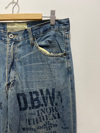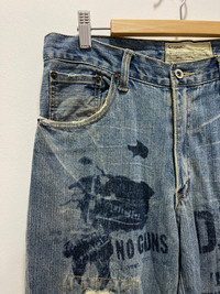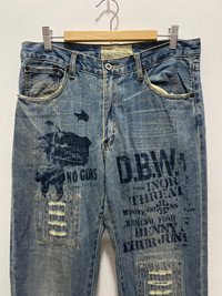 JAPANESE CARAVACH SCRIBBLE MOTIVE STRAIGHT DISTRESSED DENIM JEANS PLEASE READ THE DESCRIPTION!!! DON'T BE SHY TO ASK ANY QUESTION :- WE DO COMBINE SHIPPING. HAPPY SHOPPING WITH US. • Size on tag : 82 Like 32 (manual) • Made In : refer photo • Measurement : Waist : 16 (32) inches Outseam : 45 inches Inseam : 35 inches Front Rise : 11 inches Back Rise : 15 inches Thigh : 12 inches Knee : 8.5 inches Leg Oppening :8 (16) inches • Condition : Good used condition Slight Stained WORLDWIDE SHIPPING 3-5 days arrive with tracking number • NO REFUND / NO RETRUN Please carefully check the description and the measurements posted for the item you're interested in Take a look at all the photos {defects, tags, etc}. if you have doubts please don't buy. Don't worry about customs tax or fees. I always declare as "GIFT" and put the value item $10 - 40 Please leave your PHONE NUMBER on the note while make a purchase, as the shipping company always need the phone number to help delivering. THANK YOU dumoh1