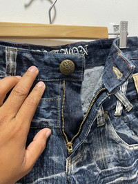 JAPANESE DOUBLE WAIST STYLE PATCHES DISTRESSED DENIM JEANS PLEASE READ THE DESCRIPTION!!! DON'T BE SHY TO ASK ANY QUESTION :- WE DO COMBINE SHIPPING. HAPPY SHOPPING WITH US. • Size on tag : like fits 30 • Made In : refer photo • Materials : refer photo • Measurement : Waist : 15.5 (31) inches (manual) Outseam : 39 inches Inseam : 29.5 inches Front Rise : 10 inches Back Rise : 15 inches Thigh : 11.5 inches Knee : 9 inches Leg Oppening : 8 (16) inches • Condition : Good used condition WORLDWIDE SHIPPING 3-5 days arrive with tracking number • NO REFUND / NO RETRUN Please carefully check the description and the measurements posted for the item you're interested in Take a look at all the photos {defects, tags, etc}. if you have doubts please don't buy. Don't worry about customs tax or fees. I always declare as "GIFT" and put the value item $10 - 40 Please leave your PHONE NUMBER on the note while make a purchase, as the shipping company always need the phone number to help delivering. THANK YOU. D5
