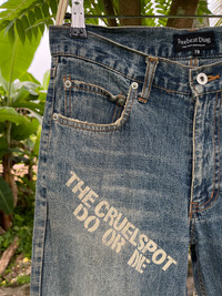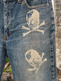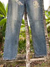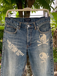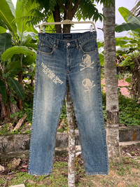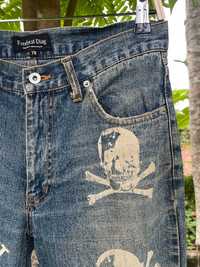 JAPANESE FREEBEAT DIAG SKULL LOGO PRINT POEM DISTRESSED JEANS PLEASE READ THE DESCRIPTION!!! DON'T BE SHY TO ASK ANY QUESTION :- WE DO COMBINE SHIPPING. HAPPY SHOPPING WITH US. • Size on tag : 79cm like fits 31/30 • Made In : refer photo • Materials : refer photo • Measurement : Waist : 15.5 (31) inches (manual) Outseam : 43 inches Inseam : 32.5 inches Front Rise : 11 inches Back Rise : 14 inches Thigh : 12 inches Knee : 9 inches Leg Oppening : 8 (16) inches • Condition : Good used condition WORLDWIDE SHIPPING 3-5 days arrive with tracking number • NO REFUND / NO RETRUN Please carefully check the description and the measurements posted for the item you're interested in Take a look at all the photos {defects, tags, etc}. if you have doubts please don't buy. Don't worry about customs tax or fees. I always declare as "GIFT" and put the value item $10 - 40 Please leave your PHONE NUMBER on the note while make a purchase, as the shipping company always need the phone number to help delivering. THANK YOU. Dumoh3