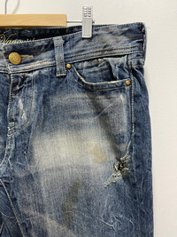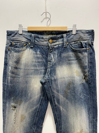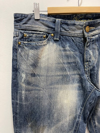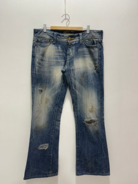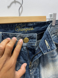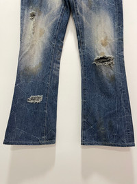 JAPANESE VANQUISH GOLD RIPPED BOOTCUT FLARED LEG DISTRESSED DENIM JEANS PLEASE READ THE DESCRIPTION!!! DON'T BE SHY TO ASK ANY QUESTION :- WE DO COMBINE SHIPPING. HAPPY SHOPPING WITH US. • Size on tag : 48 like 34 • Made In : Japan • Materials : cotton • Measurement : Waist : 17 (34) inches (manual) Outseam : 40 inches Inseam : 31.5 inches Front Rise : 9 inches Back Rise : 14 inches Thigh : 12 inches Knee : 8.5 inches Leg Oppening : 10 (20) inches • Condition : Good used condition Ripped Stain refer photo WORLDWIDE SHIPPING 3-5 days arrive with tracking number • NO REFUND / NO RETRUN Please carefully check the description and the measurements posted for the item you're interested in Take a look at all the photos {defects, tags, etc}. if you have doubts please don't buy. Don't worry about customs tax or fees. I always declare as "GIFT" and put the value item $10 - 40 Please leave your PHONE NUMBER on the note while make a purchase, as the shipping company always need the phone number to help delivering. THANK YOU dumoh15