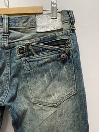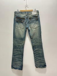 JAPANESE XFRM PATCHWORK ZIG ZAG PUNK STYLE DISTRESSED DENIM JEANS PLEASE READ THE DESCRIPTION!!! DON'T BE SHY TO ASK ANY QUESTION :- WE DO COMBINE SHIPPING. HAPPY SHOPPING WITH US. • Size on tag : 30 • Made In : refer photo • Materials : refer photo • Measurement : Waist : 15 (30) inches (manual) Outseam : 41 inches Inseam : 32 inches Front Rise : 8.5 inches Back Rise : 11.5 inches Thigh : 11 inches Knee : 8 inches Leg Oppening : 9 (18) inches • Condition : Good used condition WORLDWIDE SHIPPING 3-5 days arrive with tracking number • NO REFUND / NO RETRUN Please carefully check the description and the measurements posted for the item you're interested in Take a look at all the photos {defects, tags, etc}. if you have doubts please don't buy. Don't worry about customs tax or fees. I always declare as "GIFT" and put the value item $10 - 40 Please leave your PHONE NUMBER on the note while make a purchase, as the shipping company always need the phone number to help delivering. THANK YOU. dumoh8