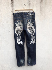 RARE DESIGN UNION MADE REAL B VOICE DENIM JEANS PLEASE READ THE DESCRIPTION!!! DON'T BE SHY TO ASK ANY QUESTION :- WE DO COMBINE SHIPPING. HAPPY SHOPPING WITH US. • Size on tag : Like 32 (manual) • Made In : refer photo • Measurement : Waist : 16 (32) inches Outseam : 44 inches Inseam : 32.5 inches Front Rise : 11.5 inches Back Rise : 15.5 inches Thigh : 13 inches Knee : 10 inches Leg Oppening :9 (18) inches • Condition : Good used condition WORLDWIDE SHIPPING 3-5 days arrive with tracking number • NO REFUND / NO RETRUN Please carefully check the description and the measurements posted for the item you're interested in Take a look at all the photos {defects, tags, etc}. if you have doubts please don't buy. Don't worry about customs tax or fees. I always declare as "GIFT" and put the value item $10 - 40 Please leave your PHONE NUMBER on the note while make a purchase, as the shipping company always need the phone number to help delivering. THANK YOU RS4