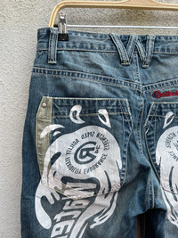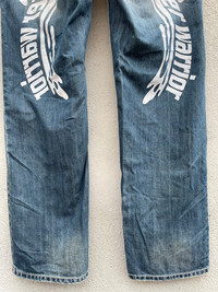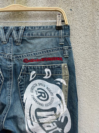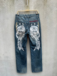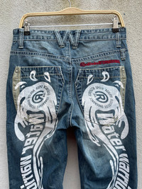 VINTAGE REALBVOICE INTERNATIONAL PRINTED DISTRESSED DENIM JEANS PLEASE READ THE DESCRIPTION!!! DON'T BE SHY TO ASK ANY QUESTION :- WE DO COMBINE SHIPPING. HAPPY SHOPPING WITH US. • Size on tag : like fits 32 • Made In : refer photo • Materials : refer photo • Measurement : Waist : 16 (32) inches (manual) Outseam : 42.5 inches Inseam : 31 inches Front Rise : 10 inches Back Rise : 17 inches Thigh : 12.5 inches Knee : 9.5 inches Leg Oppening : 9 (18) inches • Condition : Good used condition WORLDWIDE SHIPPING 3-5 days arrive with tracking number • NO REFUND / NO RETRUN Please carefully check the description and the measurements posted for the item you're interested in Take a look at all the photos {defects, tags, etc}. if you have doubts please don't buy. Don't worry about customs tax or fees. I always declare as "GIFT" and put the value item $10 - 40 Please leave your PHONE NUMBER on the note while make a purchase, as the shipping company always need the phone number to help delivering. THANK YOU. R5,