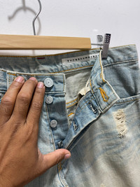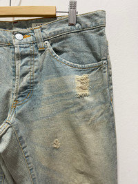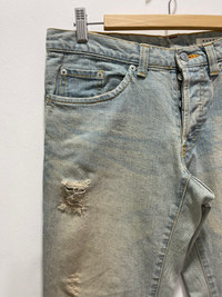DESIGNER SUNAOKUWAHARA BY ISSEY MIYAKE LIGHT WASH DISTRESSED DENIM JEANS PLEASE READ THE DESCRIPTION!!! DON'T BE SHY TO ASK ANY QUESTION :- WE DO COMBINE SHIPPING. HAPPY SHOPPING WITH US. • Size on tag : like 31 • Made In : japan • Materials : refer photo • Measurement : Waist : 16 (32) inches (manual) Outseam : 35 inches Inseam : 27 inches Front Rise : 8 inches Back Rise : 13.5 inches Thigh : 11.5 inches Knee : 8.5 inches Leg Oppening : 8 (16) inches • Condition : Good used condition WORLDWIDE SHIPPING 3-5 days arrive with tracking number • NO REFUND / NO RETRUN Please carefully check the description and the measurements posted for the item you're interested in Take a look at all the photos {defects, tags, etc}. if you have doubts please don't buy. Don't worry about customs tax or fees. I always declare as "GIFT" and put the value item $10 - 40 Please leave your PHONE NUMBER on the note while make a purchase, as the shipping company always need the phone number to help delivering. THANK YOU. dumoh8