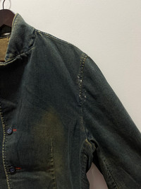 VINTAGE TERNADO MART JAPANESE DESIGN CHORE DISTRESSED DENIM JACKET PLEASE READ THE DESCRIPTION!!! DON'T BE SHY TO ASK ANY QUESTION :- WE DO COMBINE SHIPPING. HAPPY SHOPPING WITH US. • Size on tag : L • Made In : • Materials : Cotton/Polyester • Measurement : Chest : 23 inches Length : 30 inches Shoulder : 20.5 inches Sleeve Length : 25 inches Length From To Neck : 30 inches Hem : • Condition : Good used condition one button missing Refer photo WORLDWIDE SHIPPING 3-5 days arrive with tracking number • NO REFUND / NO RETRUN Please carefully check the description and the measurements posted for the item you're interested in Take a look at all the photos {defects, tags, etc}. if you have doubts please don't buy. Don't worry about customs tax or fees. I always declare as "GIFT" and put the value item $10 - 40 Please leave your PHONE NUMBER on the note while make a purchase, as the shipping company always need the phone number to help delivering. THANK YOU. Dumoh35