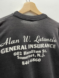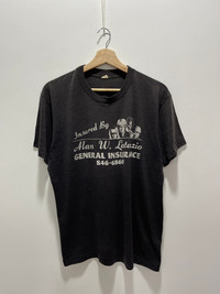 VINTAGE 80s SCREEN STARS GANERAL INSURANCE BT ALAN W.LATANZIO SINGLE STITCH TSHIRT PLEASE READ THE DESCRIPTION!!! DON'T BE SHY TO ASK ANY QUESTION :- WE DO COMBINE SHIPPING. HAPPY SHOPPING WITH US. • Size on tag : L like fits M-S • Made In : usa • Materials : refer photo • Measurement : Chest : 19.5 inches Length : 26 inches • Condition : Good used condition WORLDWIDE SHIPPING 3-5 days arrive with tracking number • NO REFUND / NO RETRUN Please carefully check the description and the measurements posted for the item you're interested in Take a look at all the photos {defects, tags, etc}. if you have doubts please don't buy. Don't worry about customs tax or fees. I always declare as "GIFT" and put the value item $10 - 40 Please leave your PHONE NUMBER on the note while make a purchase, as the shipping company always need the phone number to help delivering. THANK YOU. Dumoh7