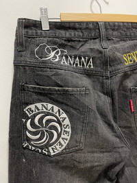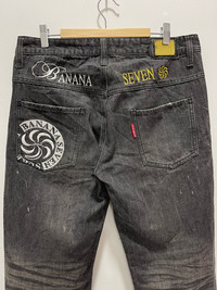 VINTAGE BANANA SEVEN SURF STYLE OCEAN DISTRESSED DENIM JEANS PLEASE READ THE DESCRIPTION!!! DON'T BE SHY TO ASK ANY QUESTION :- WE DO COMBINE SHIPPING. HAPPY SHOPPING WITH US. • Size on tag : 34 like fits 33 • Made In : refer photo • Materials : refer photo • Measurement : Waist : 16.5 (33) inches (manual) Outseam : 44.5 inches Inseam : 33 inches Front Rise : 10.5 inches Back Rise : 14.5 inches Thigh : 12 inches Knee : 9 inches Leg Oppening : 8.5 (17) inches • Condition : Good used condition WORLDWIDE SHIPPING 3-5 days arrive with tracking number • NO REFUND / NO RETRUN Please carefully check the description and the measurements posted for the item you're interested in Take a look at all the photos {defects, tags, etc}. if you have doubts please don't buy. Don't worry about customs tax or fees. I always declare as "GIFT" and put the value item $10 - 40 Please leave your PHONE NUMBER on the note while make a purchase, as the shipping company always need the phone number to help delivering. THANK YOU. dumoh6