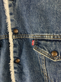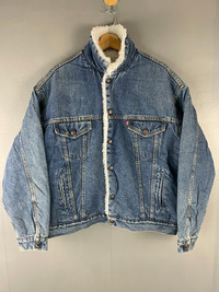 VINTAGE LEVIS STAMP 521 SHERPA LINED TRUCKER DENIM JACKET PLEASE READ THE DESCRIPTION!!! DON'T BE SHY TO ASK ANY QUESTION :- WE DO COMBINE SHIPPING. HAPPY SHOPPING WITH US. • Size on tag : L • Made In : Usa • Materials : Cotton • Measurement : Chest : 25 inches Length : 26 inches Shoulder : 22 inches Sleeve Length : 23 inches Length From To Neck : 31 inches Hem : • Condition : Good used condition WORLDWIDE SHIPPING 3-5 days arrive with tracking number • NO REFUND / NO RETRUN Please carefully check the description and the measurements posted for the item you're interested in Take a look at all the photos {defects, tags, etc}. if you have doubts please don't buy. Don't worry about customs tax or fees. I always declare as "GIFT" and put the value item $10 - 40 Please leave your PHONE NUMBER on the note while make a purchase, as the shipping company always need the phone number to help delivering. THANK YOU. U1