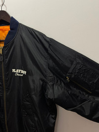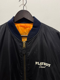 VINTAGE PLAYBOY CHANNEL LOGO KANYE STYLE BOMBER JACKET PLEASE READ THE DESCRIPTION!!! DON'T BE SHY TO ASK ANY QUESTION :- WE DO COMBINE SHIPPING. HAPPY SHOPPING WITH US. • Size on tag : XL • Made In : Refer Photo • Materials : Polyester/Nylon • Measurement : Chest : 26.5 inches Length : 26 inches Shoulder : 21 inches Sleeve Length : 25.5 inches Length From To Neck : 31.5 inches Hem : 21 inches • Condition : Good used condition Slight Stained Refer photo WORLDWIDE SHIPPING 3-5 days arrive with tracking number • NO REFUND / NO RETRUN Please carefully check the description and the measurements posted for the item you're interested in Take a look at all the photos {defects, tags, etc}. if you have doubts please don't buy. Don't worry about customs tax or fees. I always declare as "GIFT" and put the value item $10 - 40 Please leave your PHONE NUMBER on the note while make a purchase, as the shipping company always need the phone number to help delivering. THANK YOU. Dumoh 42