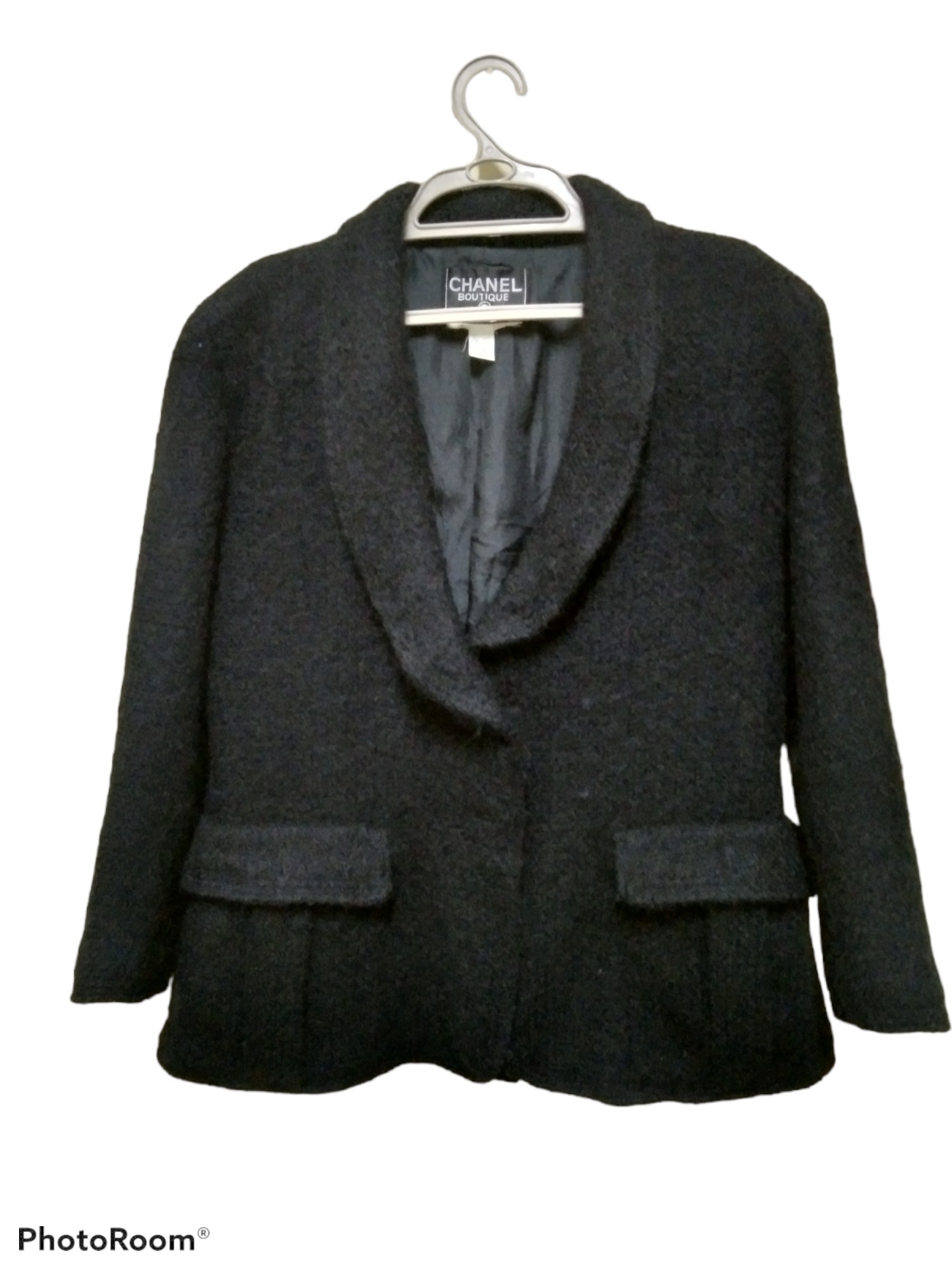 PLEASE READ AND SEE THE DETAILS BEFORE BUYING 🙏🙏 You Can see the stitches of tag is Done by profesional. ➡️Made in France Still can read after tag been cut off. ➡️For Japanese Market that why another japanese tag is put in there. ➡️Colour : Black Charcoal ➡️Outside -Wool ➡️Lining - Silk with small Chanel logo ➡️Need set of 14 button ➡️ 4 set in chest, 8 set in both hand, 2set for pocket. ➡️Spent another 1-2 hundred dollar more for button, you will get 4-5K in Market Price Chanel Jacket. ➡️Armpit 19inch ➡️Length 28