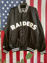 💥PLEASE READ THE DETAILS AND MANUAL MEASUREMENTS BECAUSE SOMETIMES WHAT IN TAG NOT THE SAME AS MANUAL MEASUREMENTS. ☢️NO RETURNED AFTER THE ITEMS WAS RECEIVED. 💥THERE IS NO ISSUE OF ASIA SIZE OR EUROPE SIZE IF YOU REFER THE PICTURE GIVEN😘😘😘 🔥PLEASE READ AND SEE THE DETAILS 🔥 🔥🔥 VINTAGE ITEMS 🔥 🔥 ➡️ITEM CODE : J 000554 ➡️NFL ➡️RAIDERS ➡️VINTAGE ➡️VARSITY JACKET ➡️TAG SIZE XL FIT XXL ➡️NYLON ➡️MINOR DEFECT ref picture -such a rubber paint on sleeve NEVER try to Clean it with detergent or thinner. - Alphabet R running it white colour ➡️Condition : NICE 😘😘😘. Hem, armwrist and neck condition like new. Please refer details picture carefully ➡️Please Buy with confidence! Thanks for your support ➡️Payment method via PayPal only. No cancellation allowed after made the payment. ➡️Will be shipped 3-5 business days after purchased. DHL Express 7-10days. ➡️Additional Policies and FAQ: Pls read all the description before buying. This is pre-owned/used authentic collections, so very tiny flaws are common. We guarantee satisfaction and authenticity. ➡️As usual, I'm more than happy to entertain offers so fire away. Also, I can discount for multiple purchases.👍👍 I'm more than happy to provide any additional information or answer any questions. 💟💟THANKS FOR YOUR SUPPORT💟💟