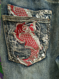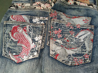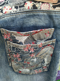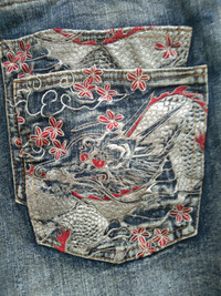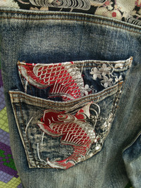 ➡️MOST OF SUKAJAN DESIGN ARE MADE TO SHOWS POWER AND CONQUER IN JAPAN. SYMBOL AS DRAGON, TIGER, PHOENIX, KOI FISH, ALL THAT MOST POPULAR IN JAPAN IN FEW YEARS AGO. ➡️NOWADAYS JACKETS & PANTS THAT BEEN USE DURING THAT LEGACY AND TRADITION IS HARD TO FIND.. ♻️ITEM CODE : AK ♻️SUKAJAN DENIM ♻️JAPANESE BRAND ♻️DRAGON & FISH KOI DESIGN ♻️4 BACK POCKET DESIGN 💥All items are USED unless it stated NEW, BRAND NEW OR NEVER WORN items. 💥Kindly see all pictures, PLEASE ENLARGE IT TO GET CLEAR IMAGES. All damages, fabric defects, flaws, faded, unremovable stains and etc will be shown in pictures. 💥THE COLOUR MAY DIFFER FROM ACTUAL ITEM due to lightning and angle view during photo taken. 💥Please read the details measurements and double-check with your size. Vintage clothing fits differently from modern day clothing. 💥PLEASE DON'T JUST RELY ON TAG SIZE, make sure to check all measurements given for an accurate size. ALL MEASUREMENTS ARE DONE WITH GARMENT LAYING FLAT. ✈️DHL EXPRESS ⏰10-14 BUSINESS DAYS ☎ LEAVE YOU PHONE NUMBER THANK YOU.
