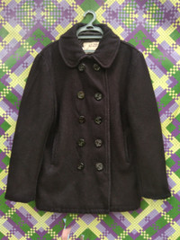 PLEASE READ THE DETAILS ♻️ITEM CODE : AK ♻️SCHOTT ♻️PEA JACKET ♻️DOUBLE-BREASTED ♻️WOOL ♻️SIZE: 40( XS ) 💥All items are USED unless it stated NEW, BRAND NEW OR NEVER WORN items. 💥Kindly see all pictures, PLEASE ENLARGE IT TO GET CLEAR IMAGES. All damages, fabric defects, flaws, faded, unremovable stains and etc will be shown in pictures. 💥THE COLOUR MAY DIFFER FROM ACTUAL ITEM due to lightning and angle view during photo taken. 💥Please read the details measurements and double-check with your size. Vintage clothing fits differently from modern day clothing. 💥PLEASE DON'T JUST RELY ON TAG SIZE, make sure to check all measurements given for an accurate size. ALL MEASUREMENTS ARE DONE WITH GARMENT LAYING FLAT. ✈️DHL EXPRESS ⏰10-14 BUSINESS DAYS ☎ LEAVE YOU PHONE NUMBER THANK YOU.