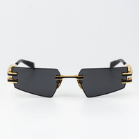 Balmain Women Sunglasses Titanium Gold Black Grey Geometric FIXE BPS-123A-54 RETAIL PRICE $860 Brand: Balmain Model Name: FIXE Model Number: BPS-123A-54 Color Code: A Gender: Women / Men / Unisex Frame Colour: Gold - Matte Black - Black Frame Shape: Geometric Frame Style: Rimless Frame Material: Titanium Lens Color: Dark Grey - AR UV Protection: Category 3 Lens width: 54mm Bridge width: 19mm Temple length: 140mm 100% UV Protection BRAND NEW and 100% AUTHENTIC! Made in Japan. FULL RETAIL BALMAIN SET INCLUDED SAME/NEXT day shipping!