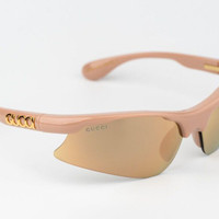 Gucci Men Sunglasses Pink Mirror Mask GG1774S 004 BRAND NEW Brand: Gucci Model: GG1774S Color Code: 004 Gender: Men / Women / Unisex Frame Colour: Pink Frame Shape: Mask Frame Type: Semi Rimless Frame Material: Injected Plastic Lens Color: Pink Mirror Lens width: 70 mm Bridge width: 12 mm Temple length: 120 mm 100% UVA / UVB protection! BRAND NEW and 100% AUTHENTIC! Made in Japan. FULL RETAIL GUCCI SET INCLUDES: 1. Glasses 2. Case 3. Matching satin pouch 4. Cleaning cloth with brand logo 5. Authenticity card/certificate SAME/NEXT day shipping!