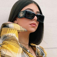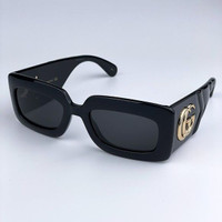 NEW Gucci GG0811S 001 Black Logo Gray Rectangle Anti-Reflective Unisex Sunglasse
