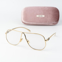 Miu Miu Women Eyeglasses Gold Blue Light Block Pilot MUA56S 5AK08N NEW AUTHENTIC