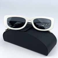 NEW Prada PR14YS 1425S0 Talc Dark Grey Rectangle Unisex Sunglasses Brand: Prada Model: PR14YS Color Code: 1425S0 Gender: Women / Unisex Year: 2022 Frame Colour: Talc Frame Shape: Rectangle Frame Style: Full Rim Frame Material: Plastic Lens Color: Dark Grey Lens Material: Plastic UV Protection: Category 3 Size: 53X19X140 100% UV Protection. Made in Italy. FULL RETAIL PACKAGE with all accessories: case, cloth and all paperwork. 100% AUTHENTIC!