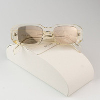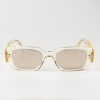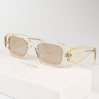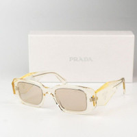 NEW Prada PR17WS 19X30N Transparent Champagne Platino Internal Mirror Rectangle Unisex Sunglasses Brand: Prada Model: PR17WS Color Code: 19X30N Gender: Unisex Frame Colour: Transparent Champagne Frame Shape: Rectangle Frame Style: Full Rim Frame Material: Acetate Lens Color: Platino Internal Mirror Lens Material: Polyamide UV Protection: Category 3 Size: 49X20X145 100% UV Protection BRAND NEW and 100% AUTHENTIC! Made in Italy. FULL RETAIL PRADA SET INCLUDES: 1. Glasses 2. Case 3. Cleaning cloth with brand logo 4. Manufacturer's information note (booklet) 5. Prada branded box SAME/NEXT day shipping!