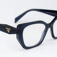 Prada Women Eyeglasses Blue Crystal Cat Eye PR18WV 08Q1O1 BRAND NEW Brand: Prada Model: PR18WV Color Code: 08Q1O1 Gender: Women Frame Colour: Blue Crystal Frame Shape: Geometric / Cat Eye / Squared Frame Style: Full Rim Frame Material: Plastic Lens Color: Demo Lens Material: Plastic Lens Width: 52mm Bridge Width: 17mm Temple Length: 145mm BRAND NEW and 100% AUTHENTIC! Made in Italy. FULL RETAIL PRADA SET INCLUDES: 1. Glasses 2. Case 3. Cleaning cloth with brand logo 4. Prada branded box SAME/NEXT day shipping!
