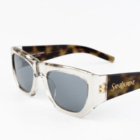 NEW Saint Laurent SL740 003 Beige Havana Silver Square Unisex Sunglasses