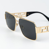 Versace Men Sunglasses Gold Grey Rectangle VE2290 100287 NEW AUTHENTIC Brand: Versace Model: VE2290 Color Code: 100287 Gender: Men / Women / Unisex Frame Color: Gold Lens Color: Dark Grey Lens Material: Polycarbonate Frame Shape: Rectangle Frame Style: Full Rim Frame Material: Metal Lens Width: 61mm Lens Height: 45mm Bridge Width: 13mm Temple Length: 145mm 100% UV Protection BRAND NEW and 100% AUTHENTIC! Made in Italy. FULL RETAIL VERSACE SET INCLUDES: 1. Glasses 2. Case 3. Cleaning cloth with brand logo 4. Versace booklet 5. Versace branded box SAME/NEXT day shipping!