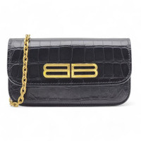 Balenciaga Gossip Wallet On Chain WOC Bag - Croc Embossed Calf Leather - Black