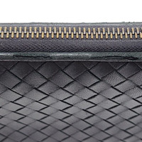 Bottega Veneta Intrecciato Leather Zip Around Wallet in Black
