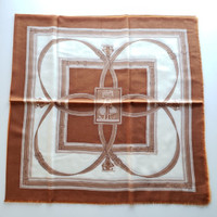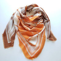 Brand: Burberry Color: Brown/Orange Material: 100% Cashmere Size: Large Department: Women Archival Belt Print in contrasting tones Year of Manufacture: 2010-2019 Made in Italy Measurements: 53" x 53"