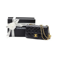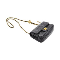 Chanel Quilted Lambskin Leather Pearl Crush Mini Flap Bag in Black